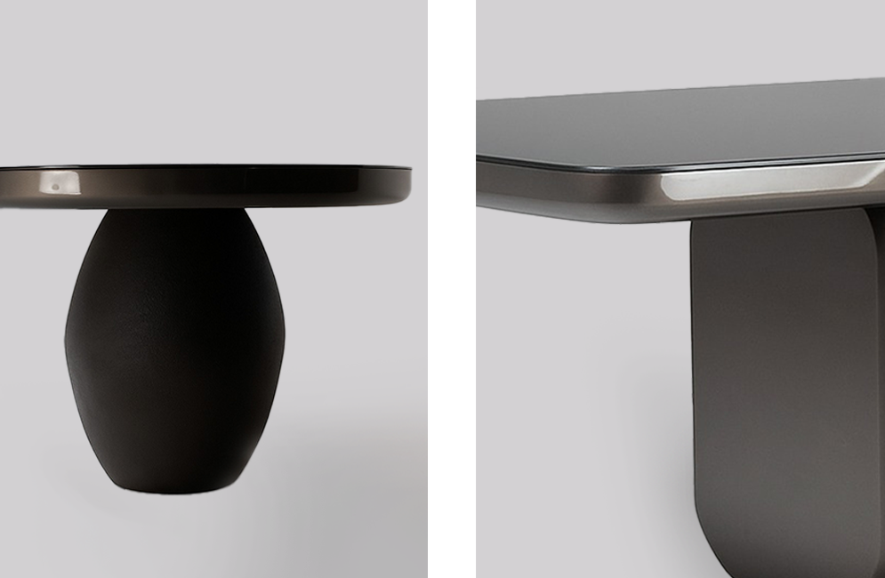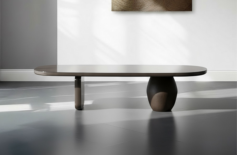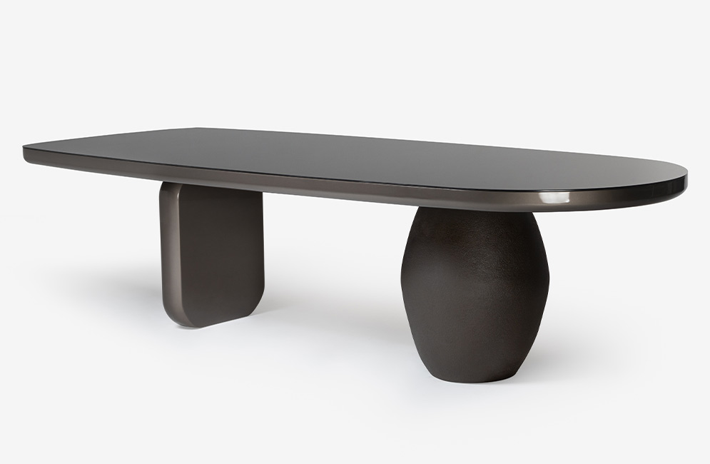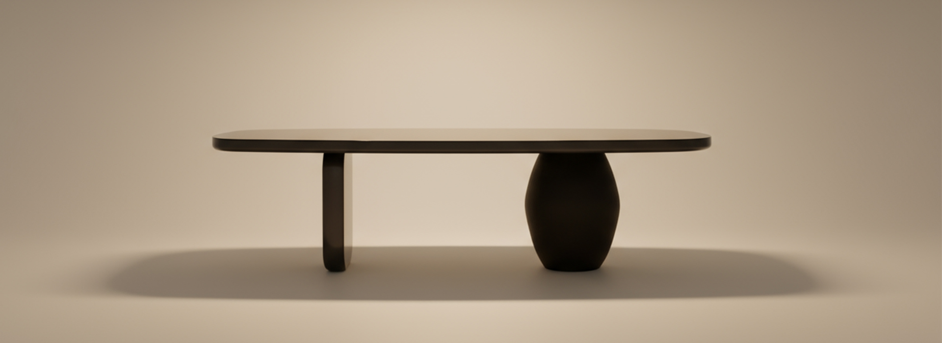 A mesa de jantar Equilíbrio explora contrastes com precisão e leveza. Seu